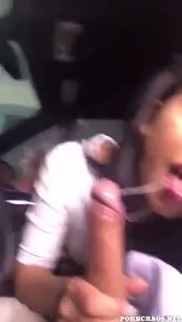 Ela já entra no banco do carona louca, abaixa o zíper, pega a rola latejando e começa a mamar gostoso: lambe a cabeça, chupa o saco, engole até o talo, baba pra caralho, engasga, olha pra câmera e ainda pede “goza na minha boca”.