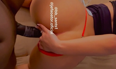 Essa morena gostosíssima BB Sants empina o bundão perfeito de quatro, calcinha vermelha fininha puxada de lado deixando a xotinha molhada exposta... O negão Jefão chega por trás com o pauzão grosso e soca tudo de uma vez, metendo fundo e rápido enquanto ela geme alto rebolando pra trás pedindo mais vara preta. Bundão balançando loucamente, tatuagens brilhando de suor, buceta apertada latejando a cada bombada pesada. Delícia de rabuda se acabando no pauzão do Jefão sem dó!