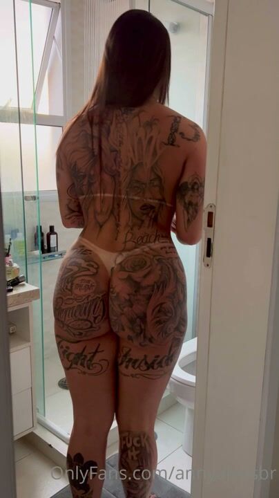 Que delicia de morena tatuada essa Anny alves viu, ela tira a roupa para o novinho fica de olho nela, ai ela vai para o banho e coloca o sabonete no corpo e novinho alisa sua xota ajudando a lava que delicia de buceta que ela tem.